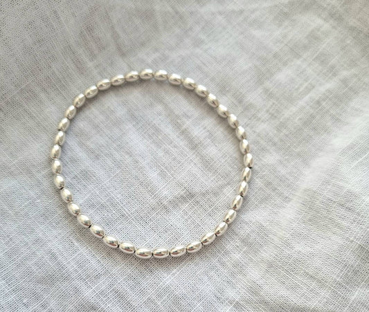 Perlenarmband Oval 925 Silber | Kugelarmband | elastisch | Basic Armband